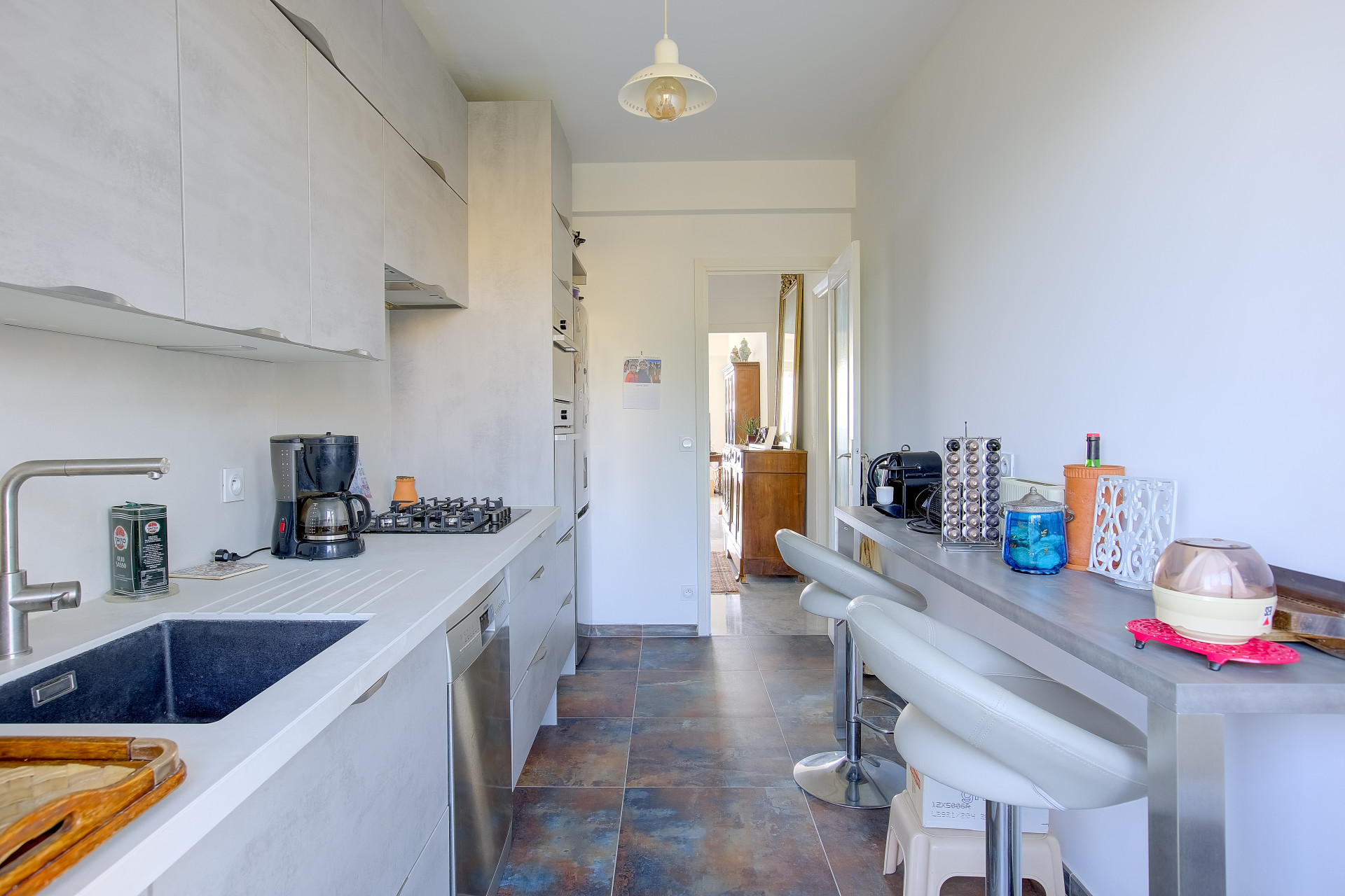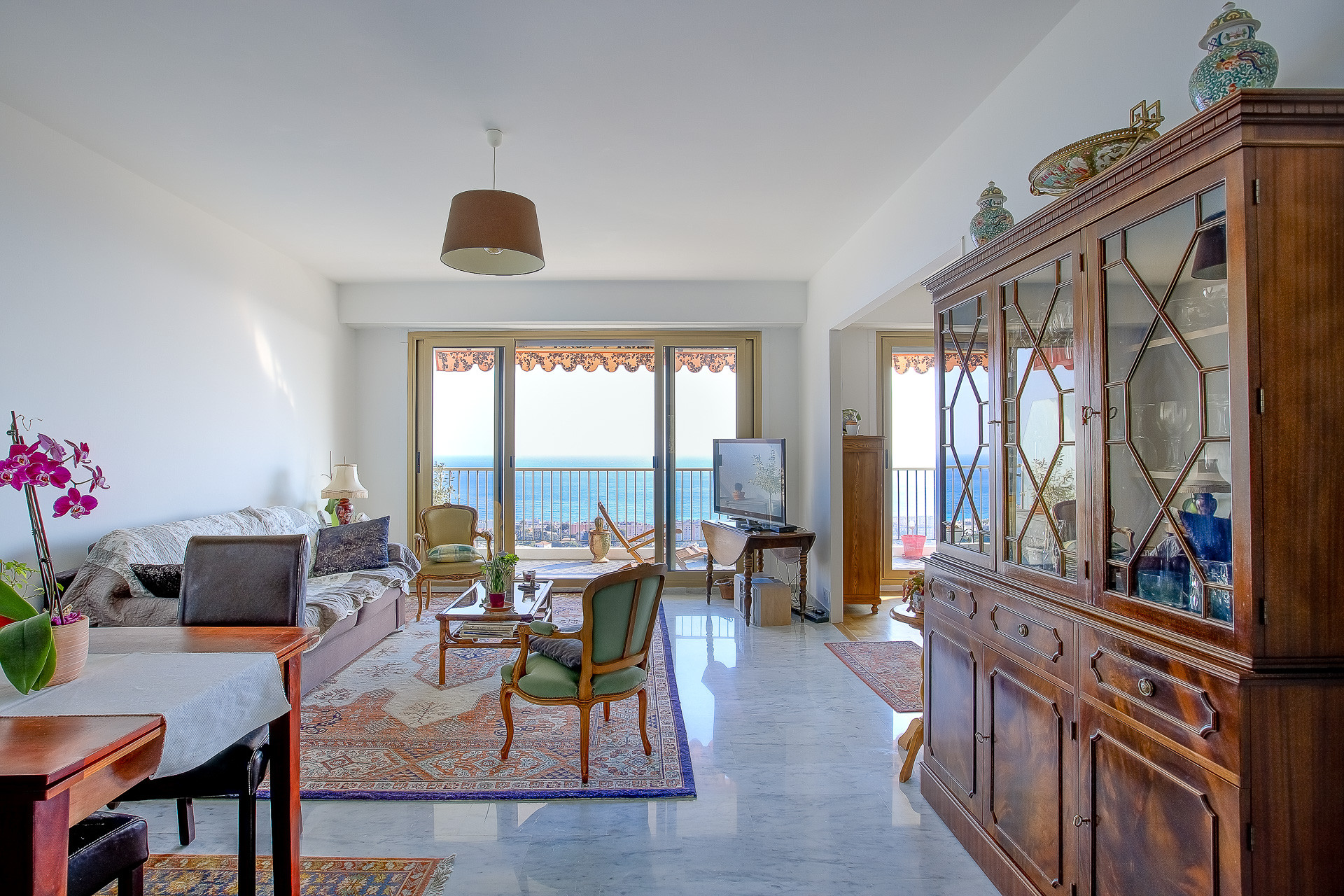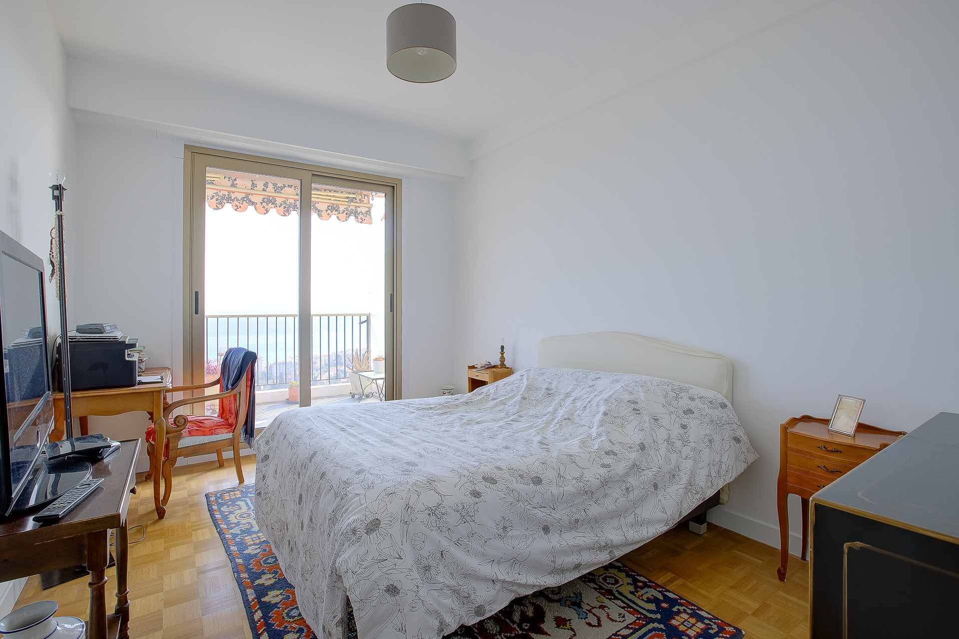Located in the very sought-after Constellations residence, we offer you this exceptional 115 m² crossing flat, on a high floor, with its large terrace, offering a panoramic view on the sea and the city of Nice. Located near the Promenade des Anglais, the residence benefits from luxury services with its huge swimming pool, its club-house, its 2 tennis courts and a landscaped park. This flat, on a high floor, has a triple exposure, East-South-West, is extremely bright and not overlooked. It has been completely renovated with quality materials. It consists of a large entrance, a double living room of 36 m², a night area with 3 large bedrooms, one of which has a sea view, a magnificent fully equipped kitchen, 3 dressing rooms, 1 bathroom, 1 shower room with toilet and a separate toilet. The large terrace offers an exceptional view of the Baie des Anges, the town of Nice and Saint Jean Cap-Ferrat. A cellar complete this property. Parking