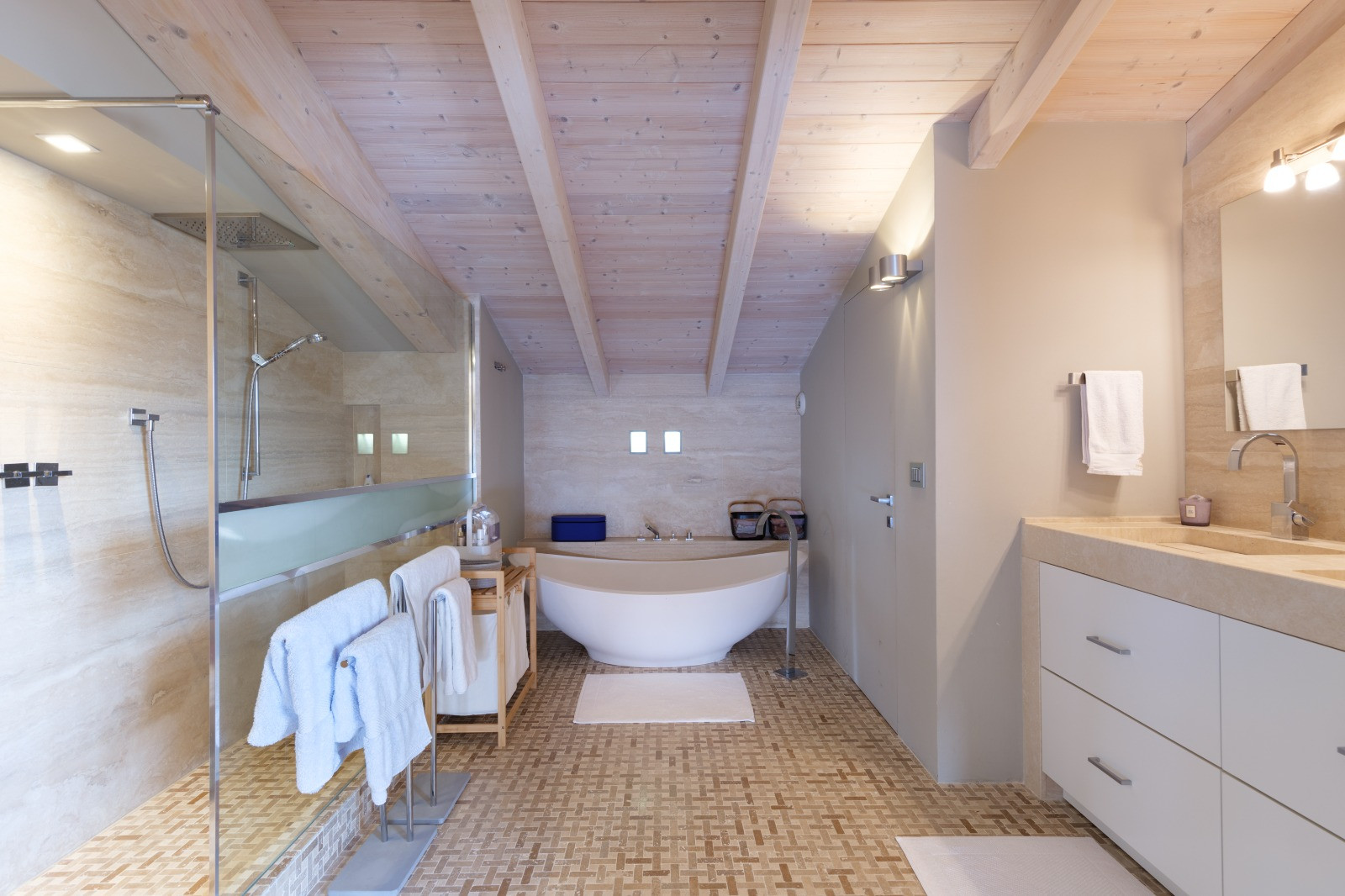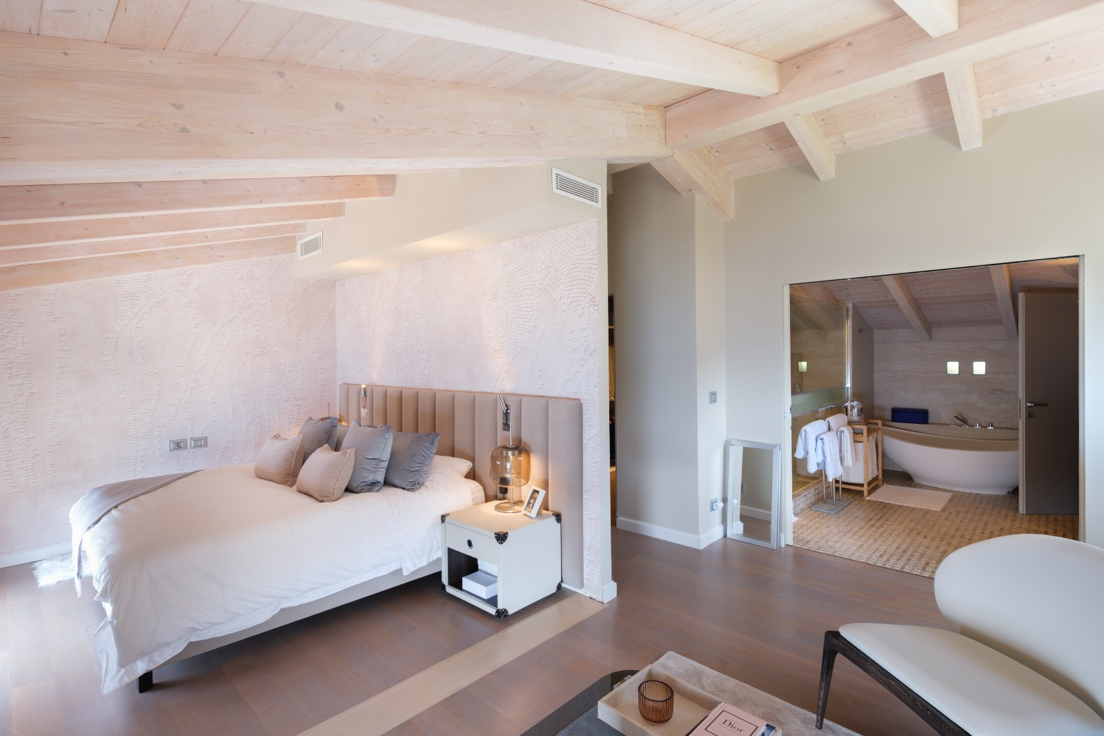 The highlight of this apartment is undoubtedly the bedrooms located on the upper floor The three bedrooms are generously proportioned and each have their own bathroom and dressing room