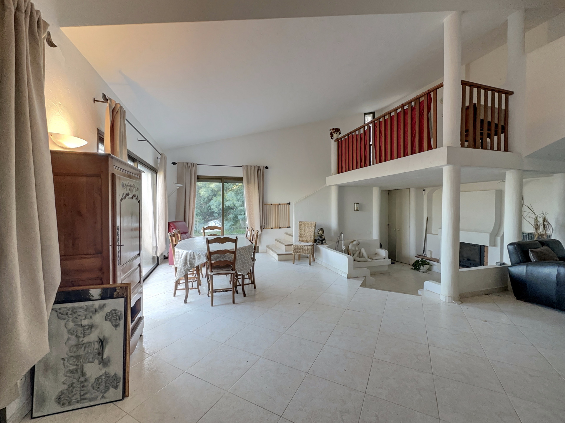 Vous serez séduits par le spacieux séjour cathédrale de plus de 50 m² avec cheminée, idéal pour les moments de détente.