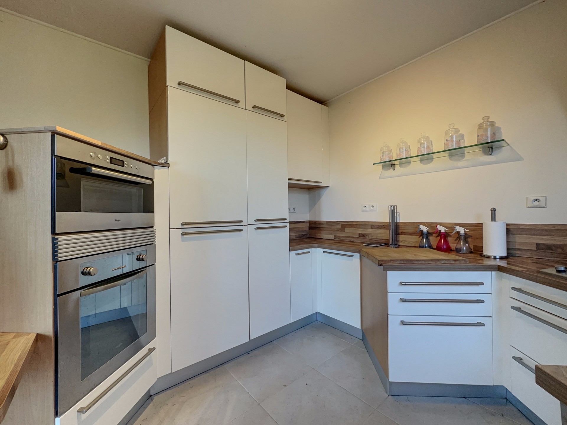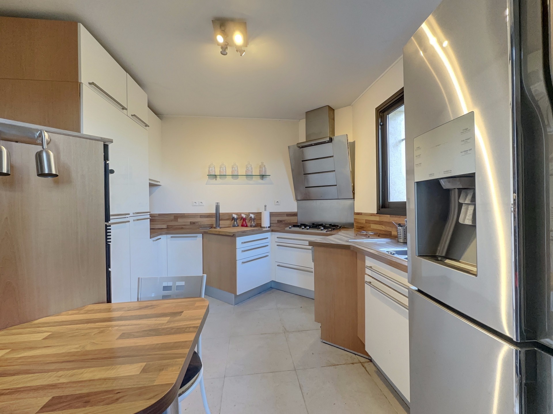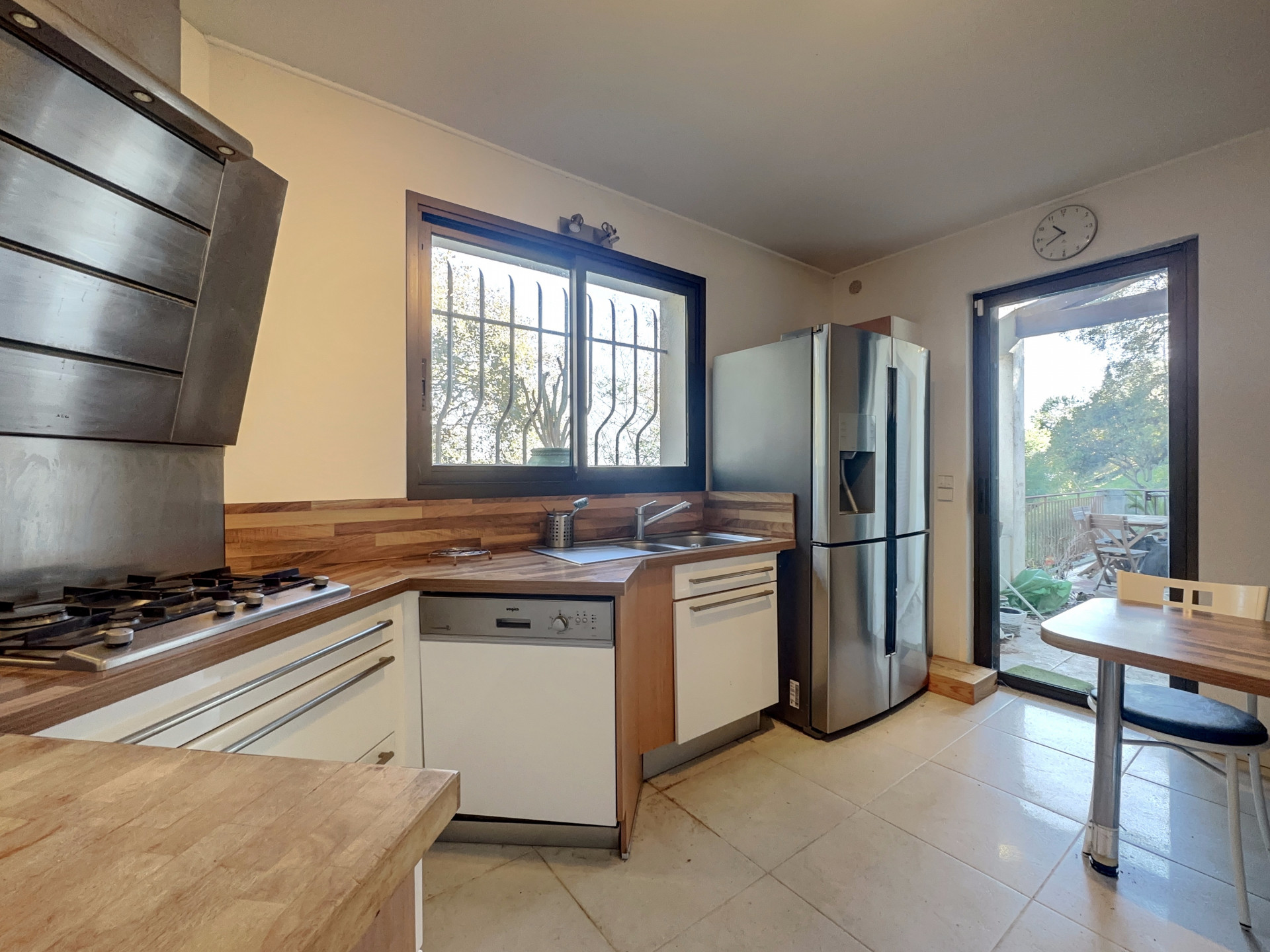 Cuisine séparée entièrement aménagée et dinatoire au rez-de-chaussée ainsi qu 'une chambre parentale avec sa salle de bain .