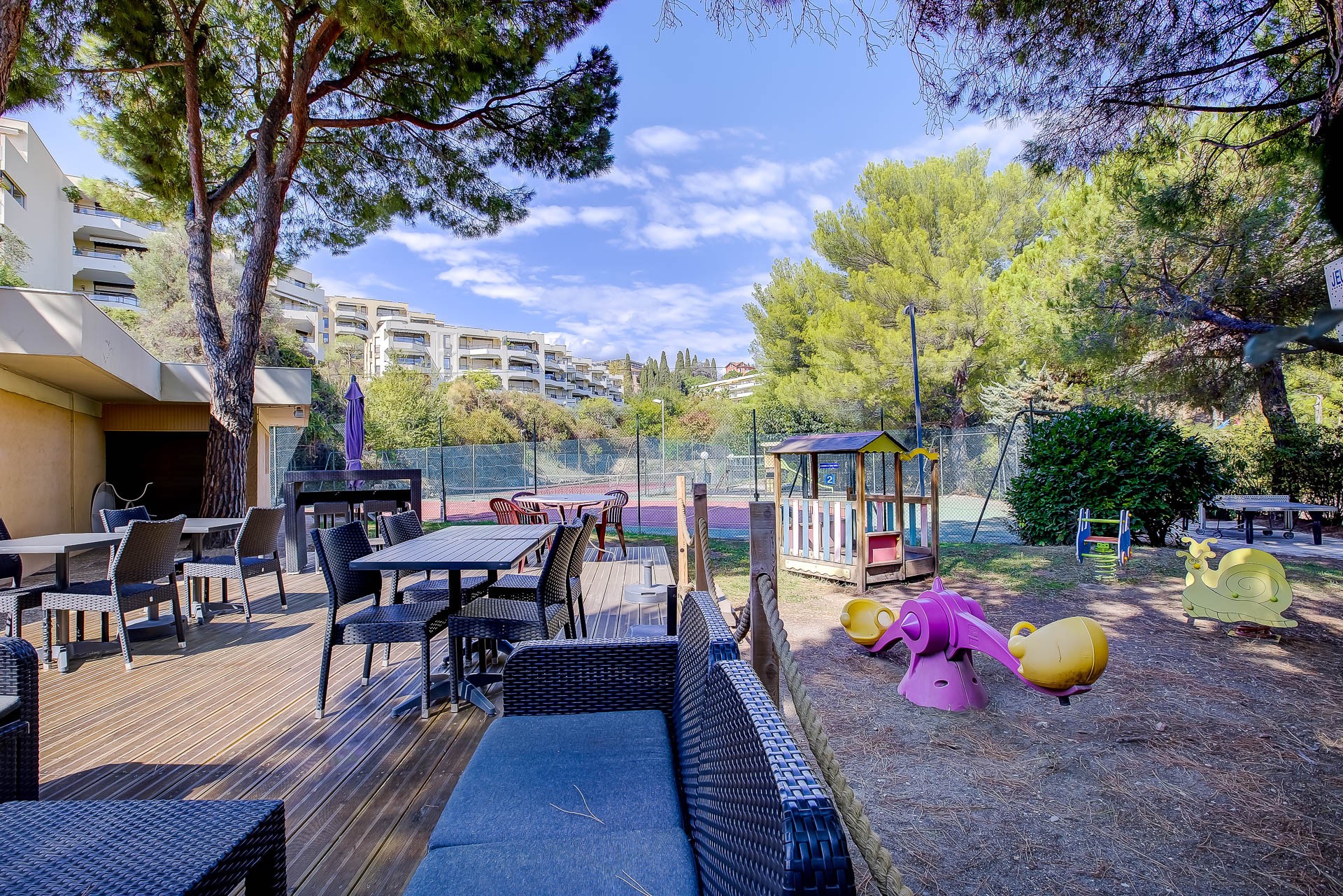 Nice Ouest , dans résidence sécurisée avec Piscine , 2 terrains de Tennis , Pétanque , aire de jeux pour enfants , restaurant et réception 24/24 nous vous proposons ce studio de 20m2 ave sa terrasse de 8m et jardinière au calme absolu et dans un écrin de verdure .
