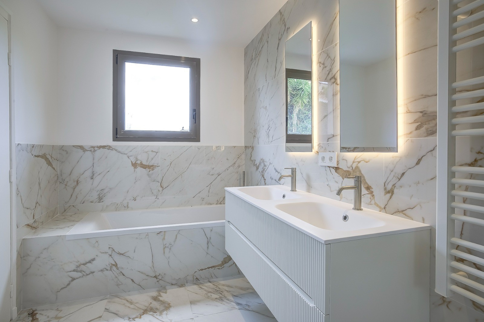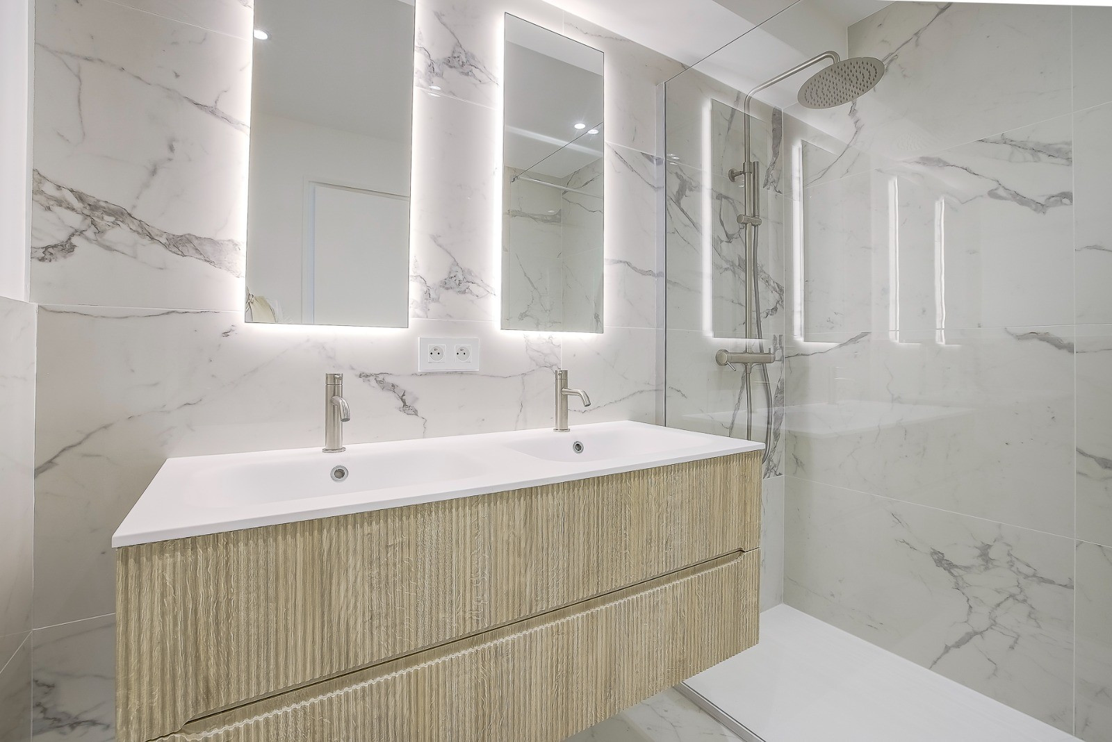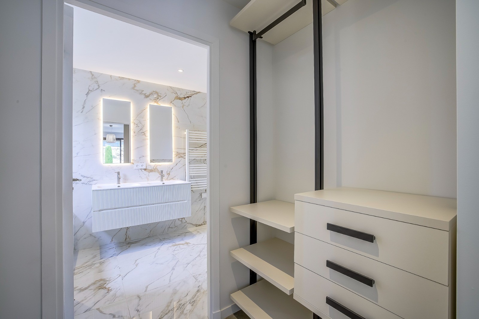 Cet appartement est entièrement climatisé pour un confort optimal. De plus, il est vendu avec une cave et un double garage, offrant ainsi un espace de rangement et de stationnement appréciable.