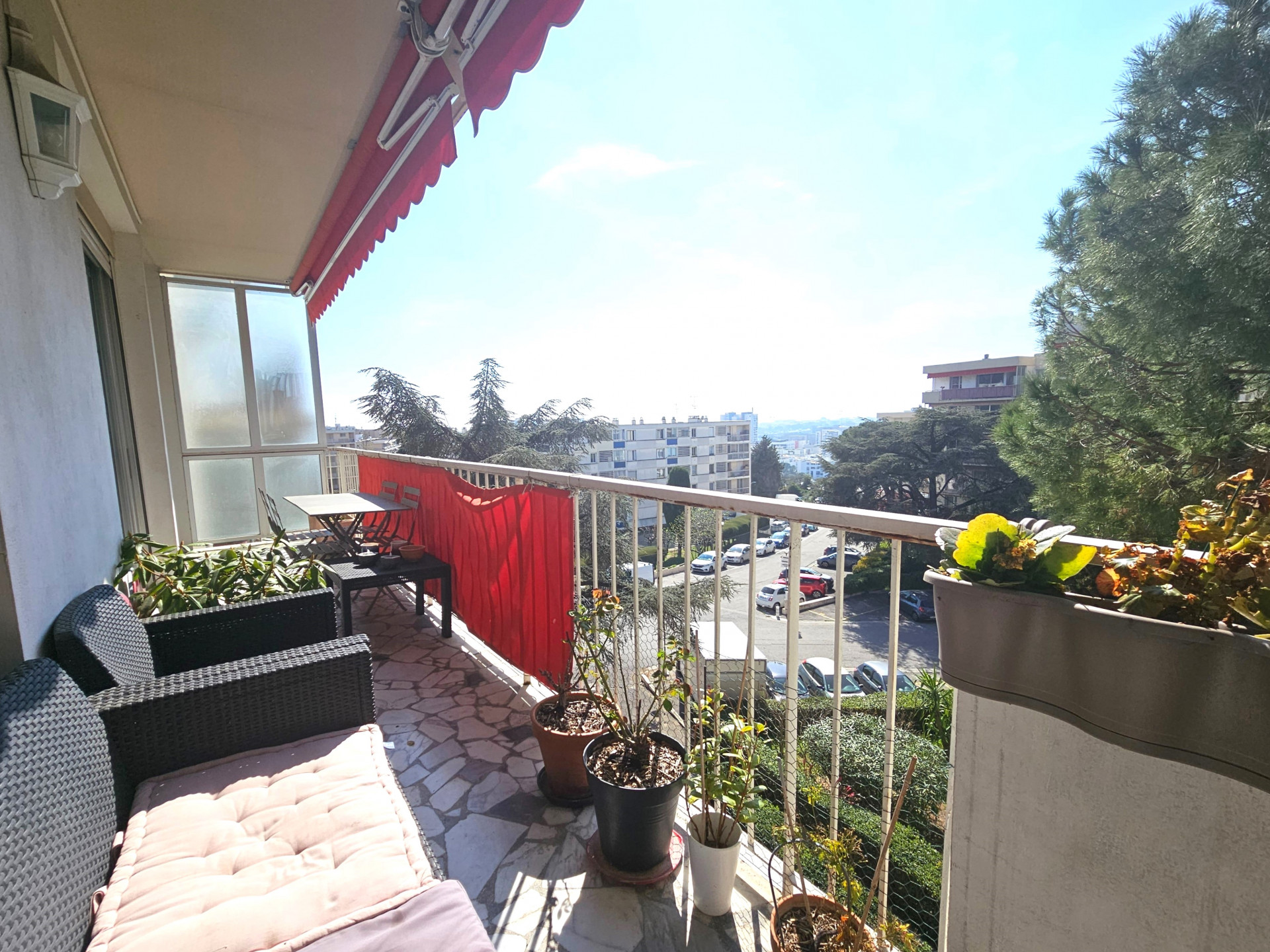 Nice ouest/Ste Marguerite : En exclusivité, au sein d'une résidence sécurisée, calme et arborée, beau et lumineux 4p d'angle de 75m² en étage élevé.