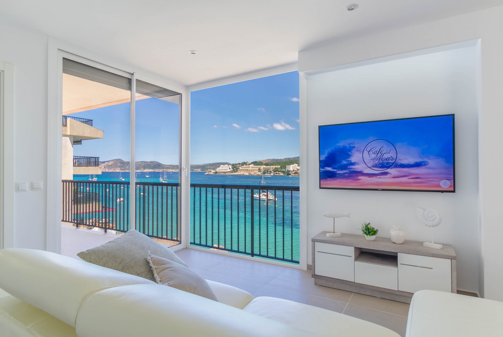 Design apartment in Santa Ponsa completely renovated with stunning sea views! The apartment is located on the second floor of a building with only 12 units in front of the sea and with direct access to the sea! Santa Ponsa beach is just a 5-minute walk away. The center of Palma de Mallorca is 20 minutes away.
