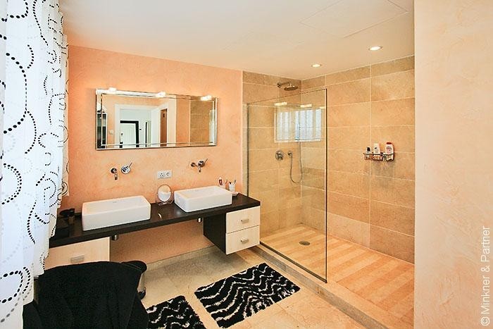 Ground floor flat of 180m2 located in a beautiful residence with garden, pool, parking and lift. The property is sold furnished and has 3 bedrooms, 3 bathrooms, an open plan fitted and equipped kitchen opening onto the living room with access to the terrace of 20m2. South facing, this space has everything to please you and make the most of your life in Majorca.