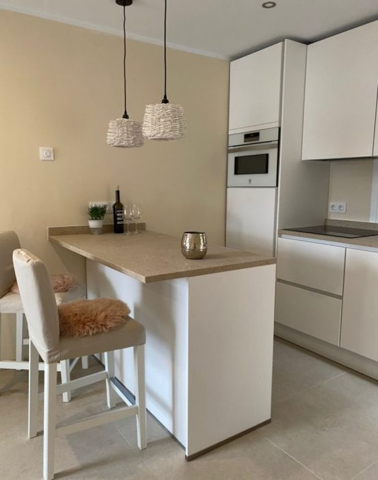 Appartement meublé de 48m2 construits, entièrement rénové, composé d’unechambre, une salle de bain avec douche, une cuisine neuve aménagée etéquipée fonctionnelle et un salon avec une charmante vue mer. Construit en1984, la propriété se situe dans un immeuble avec deux piscinescommunautaires vue mer, douche, espace de chill out. La propriété jouit d’uneravissante terrasse de 8m2 exposée Sud-Ouest avec vue sur la mer et l’île de laDargonera. Appartement coup de coeur!