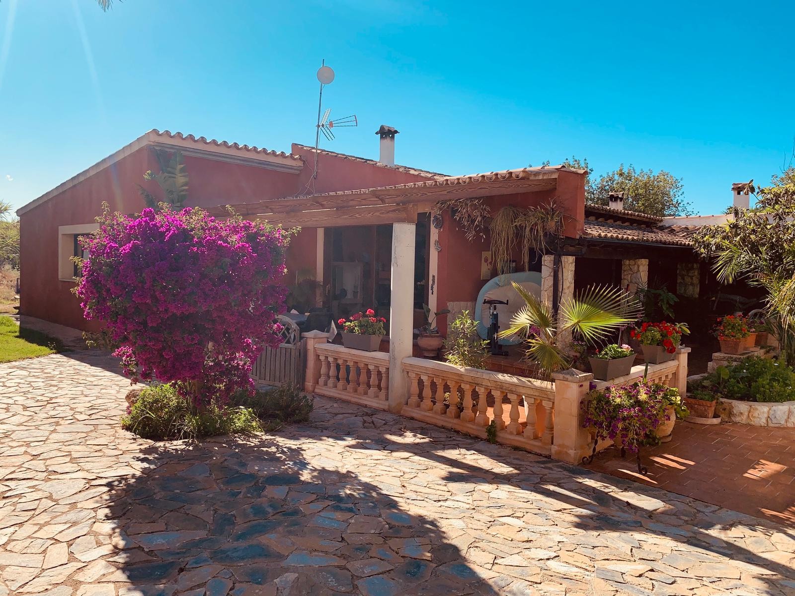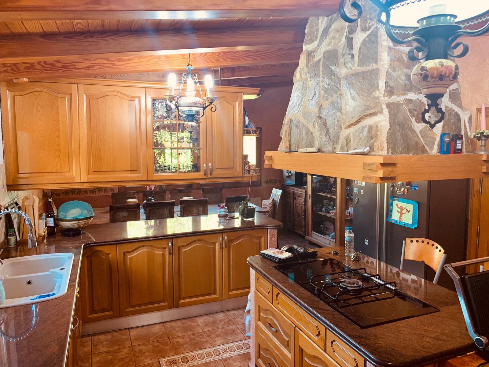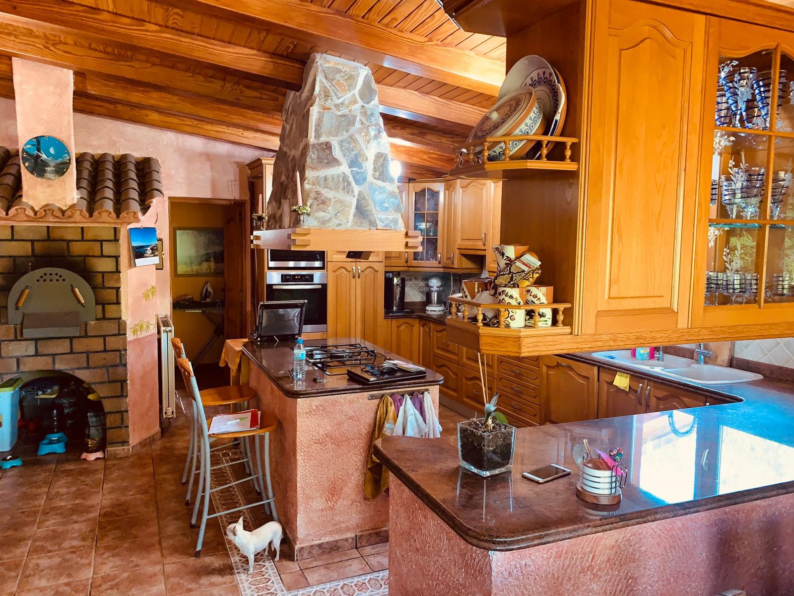 Single storey house of 500m2 consisting of 5 bedrooms, 3 bathrooms (two of which are en-suite), a fitted and equipped independent kitchen, a living room with fireplace, a utility room, a pantry and a cellar. The property enjoys a clear view and possess three covered porches, ideal for enjoying a good meal with your loved ones.