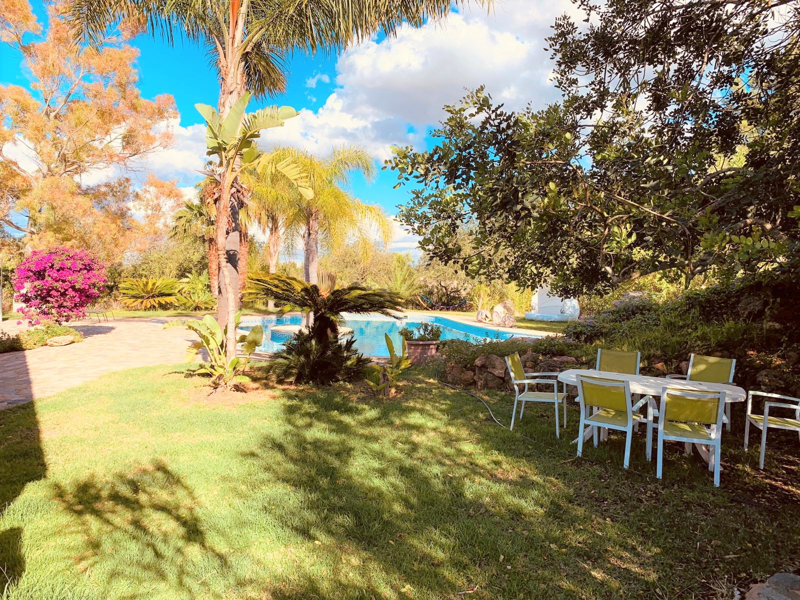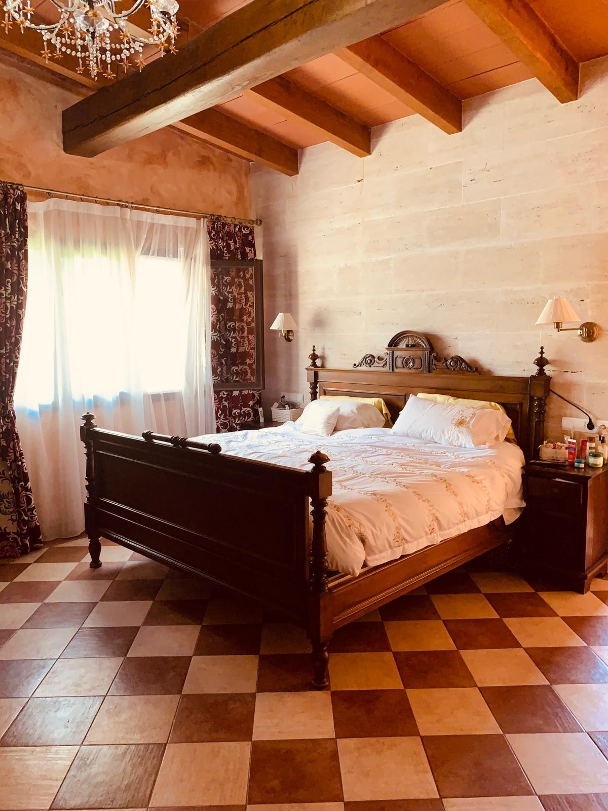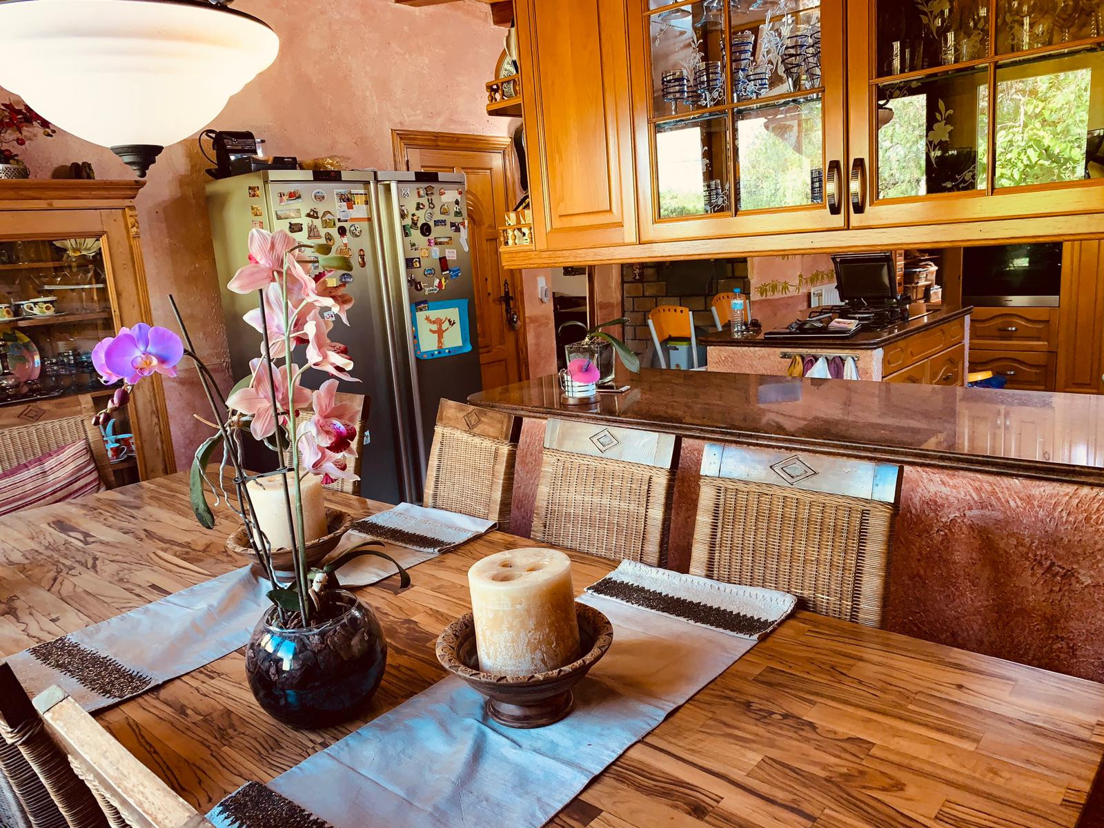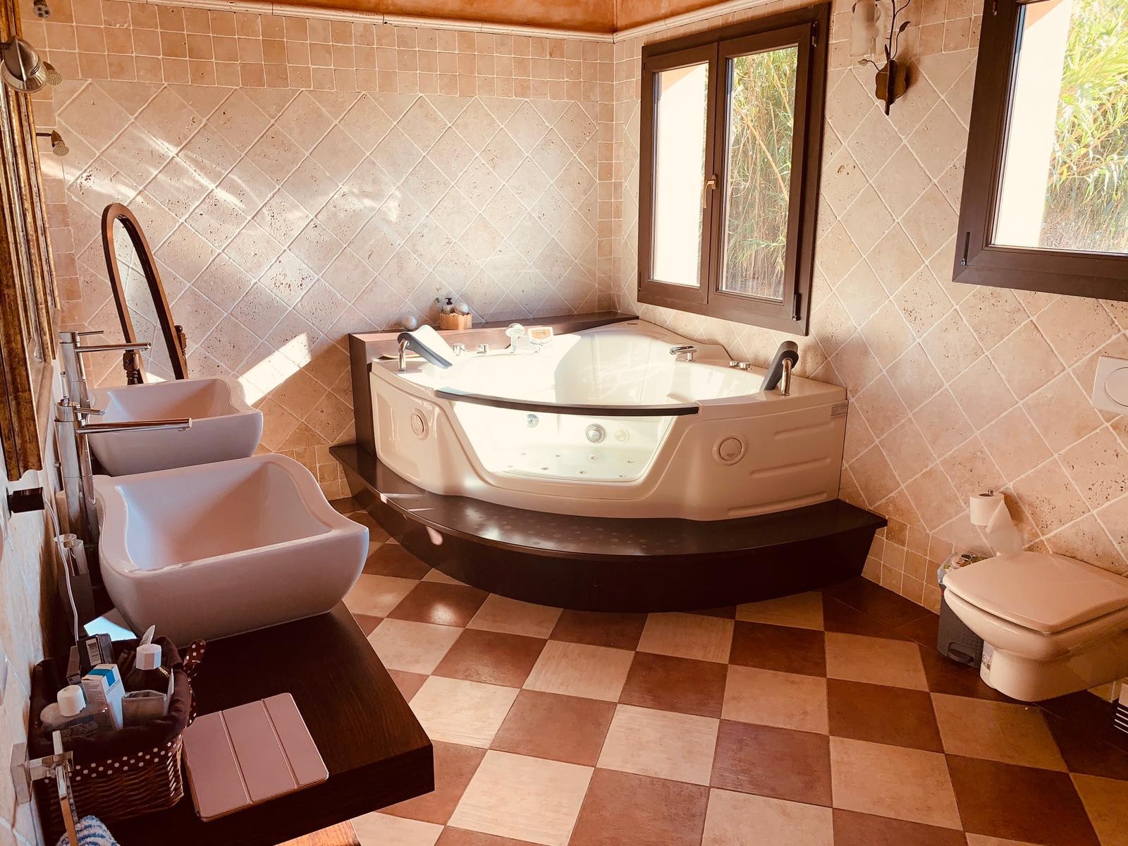Single storey house of 500m2 consisting of 5 bedrooms, 3 bathrooms (two of which are en-suite), a fitted and equipped independent kitchen, a living room with fireplace, a utility room, a pantry and a cellar. The property enjoys a clear view and possess three covered porches, ideal for enjoying a good meal with your loved ones.
