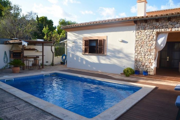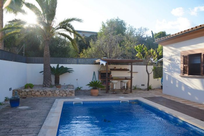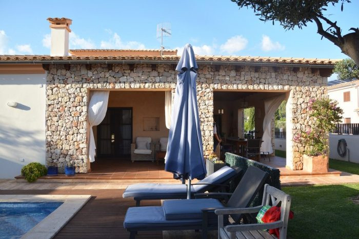 750.000 €LOCATION Magnificent house between Son Servera and Cala Millor, on the north east coast of Mallorca. Pleasant and calm environment 50 minutes from Palma and the airport. Close to the very pretty beaches of Cala Bona, S'Illot and Sa Coma. DESCRIPTION Single storey house 220m2 furnished consisting of 3 bedrooms with fitted wardrobes, an office (which can be converted into an additional bedroom), 3 bathrooms, a fitted and equipped independent kitchen, a separate toilet, and a living / dining room of 60m2 with very pleasant fireplace to eat near the fire. The living room gives access to a beautiful terrace of 60m2 ideal for large family tables, with a beautifully wooded garden of 280m2, a swimming pool, a barbecue area and a lounge area. OTHER CHARACTERISTICST he floors are tiled and the wooden openings double glazed. Presence of reversible air conditioning and electric heating. Indoor car park of 280m2 where you can keep up to 5 vehicles.
