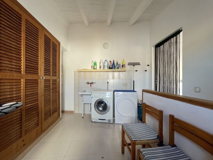 The property offers a surface area of 192m2 on 3 levels. On the ground floor there is a huge garage for 5 cars. A staircase leads to the 1st floor where the living room is located. The first floor consists of a large living-dining room of 60m2, 4 bedrooms, 2 bathrooms (1 bathtub, 1 shower) and a large and functional kitchen.In the large living room and in the kitchen there is a fireplace for comfortable and warm evenings. On the roof there is a beautiful terrace and in the inner courtyard you can enjoy the sun in any season.