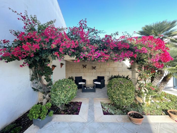 The cupboard doors, bedroom doors and the kitchen have been fitted with beautiful teak wood. The house has oil-fired central heating.