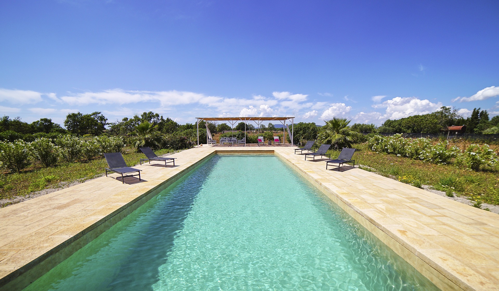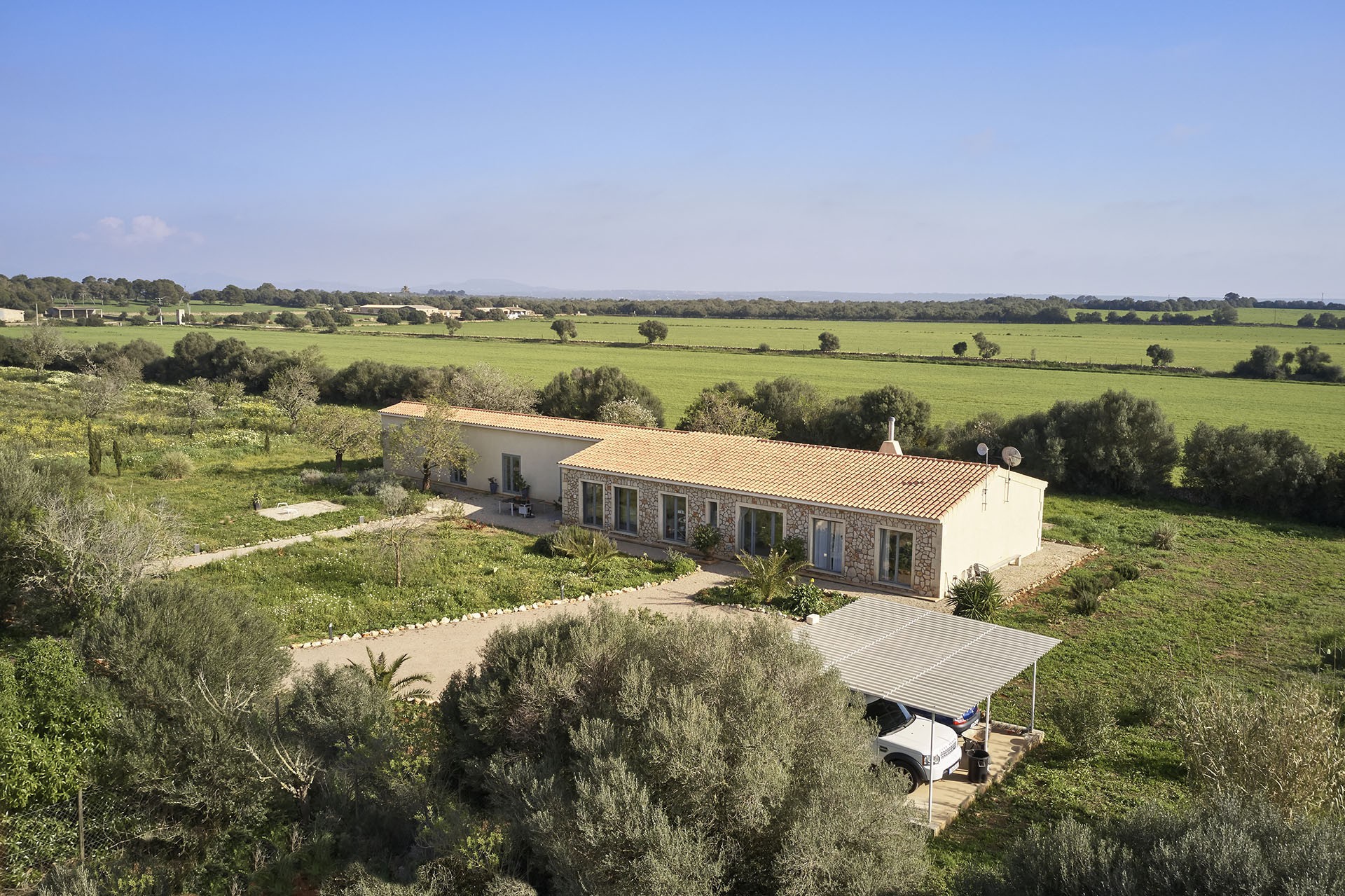 1.890.000 €LOCATION This lovely property is located in a very quiet area between Campos and Sa Rapita, in the south east of Majorca. The airport and the city of Palma are 25 minutes away by car. In just a few minutes you can reach beautiful beaches such as Es Trenc beach! DESCRIPTION Furnished single-storey house with 275m2 of living space. It consists of 5 bedrooms, 5 bathrooms, a large living room of 40m2 and a dining room with closed kitchen, a separate laundry room is also available.  You will enjoy the 16,700m2 garden with the 18 x 5 metre swimming pool, the terraces, and the view of the mountains. OTHER FEATURES Oil-fired central heating (underfloor heating). Air conditioning. The openings are aluminium double glazed. Outside parking for 5 vehicles.