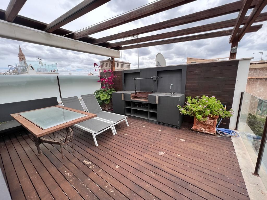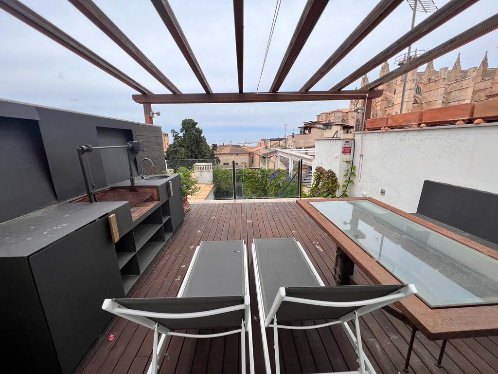 - on the roof terrace of around 50 m² with day kitchen and views of the cathedral and the sea.