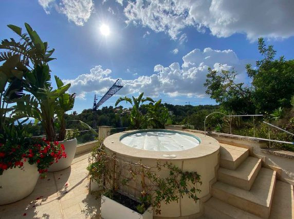 Au dernier étage, un rooftop exceptionnel avec coin chillout, sono, jacuzzi et accès au jardin et une vue imprenable sur la Méditerranée.