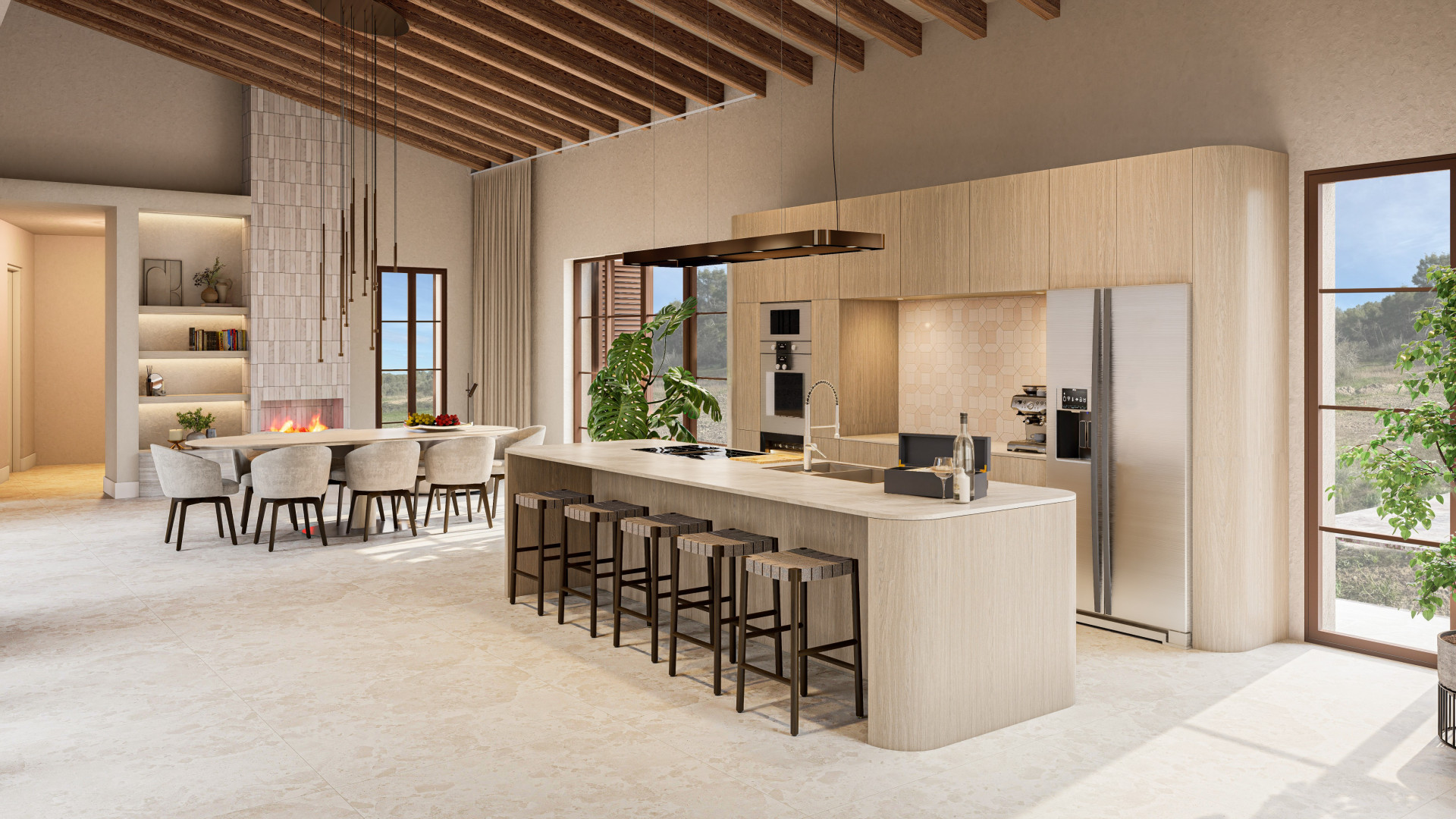 • Une cuisine entièrement équipée (Bosch Blackline), ouverte sur le séjour et le jardin, parfaite pour cuisiner tout en profitant de la vue et de la convivialité.