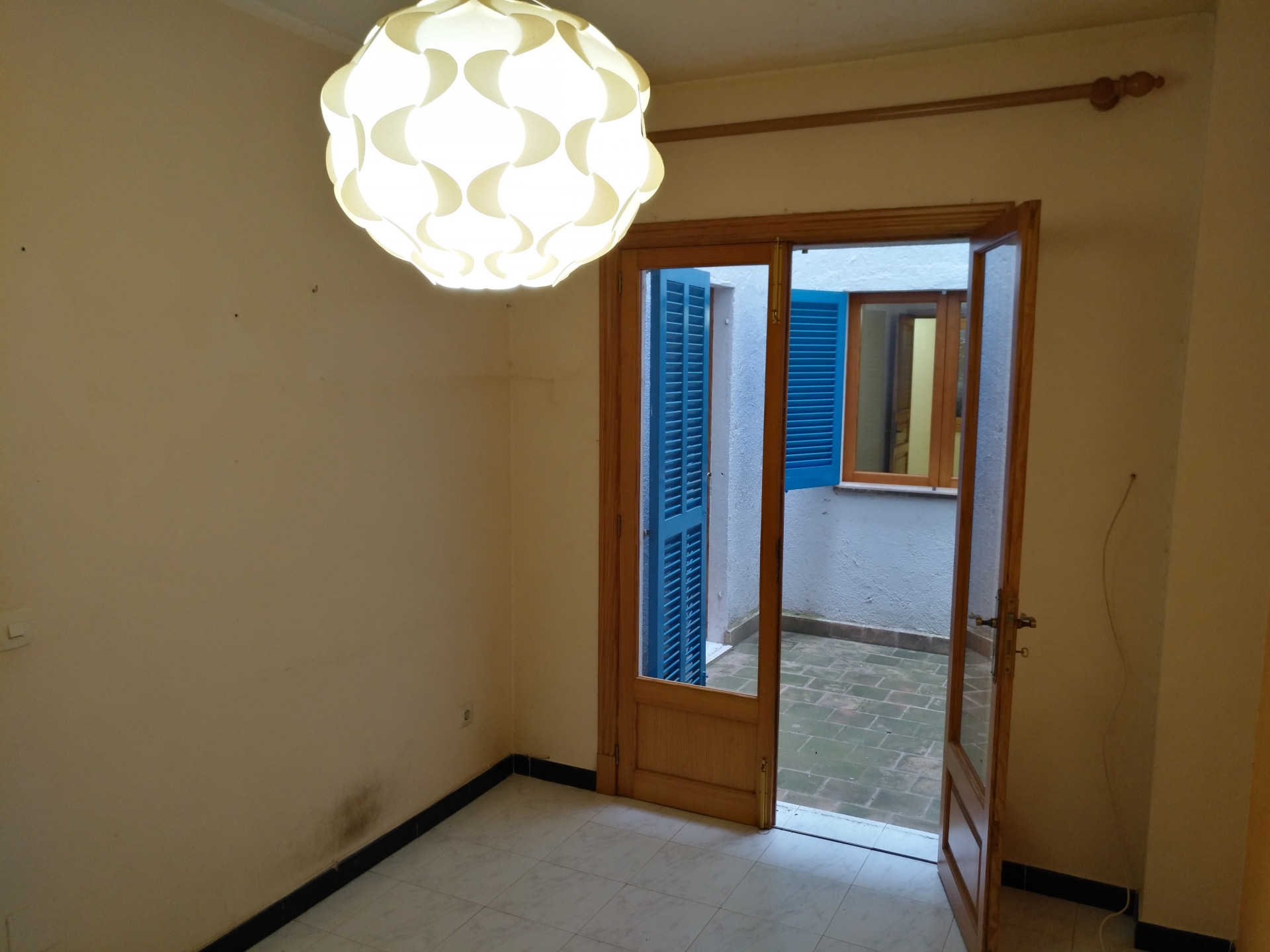 El piso tiene una superficie construida de 110m2, con un luminoso salón orientado al oeste y con vista a la plaza más importante del pueblo. Su distribución se divide en 3 habitaciones que conectan con un pequeño patio interior. También encontramos 2 salas de baño con ducha y una cocina independiente equipada y con una gran despensa.