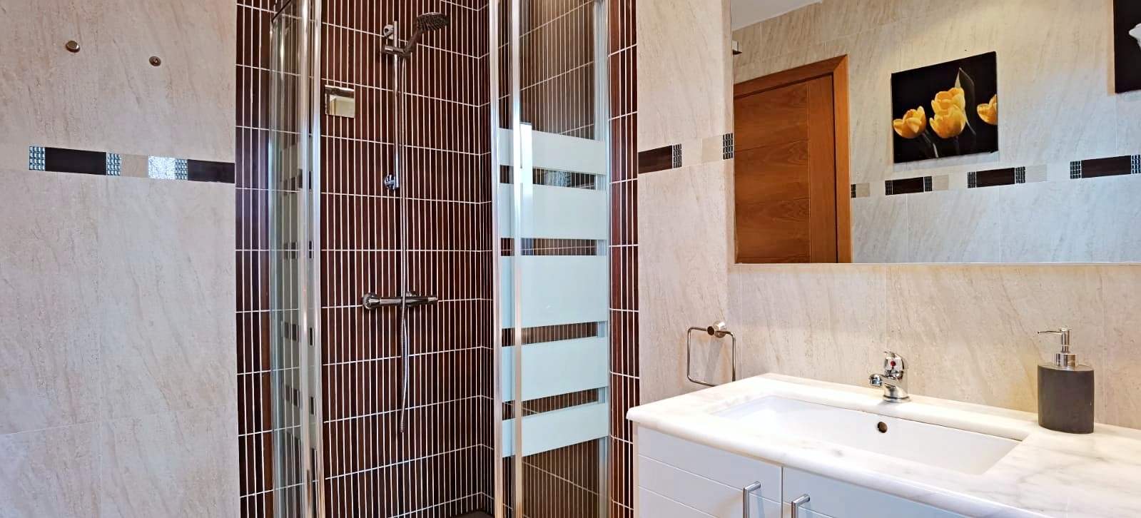 Renovada en 2018, esta bonita casa adosada, que se vende amueblada, le está esperando. Para vivir allí o invertir, ya que tiene licencia turística, disfrutará de una vista espectacular del Mediterráneo desde la azotea. Con una superficie de 191 m2 (2 niveles) en un terreno de 575 m2 con piscina y terrazas, consta de un gran salón luminoso con chimenea, abierto a la cocina amueblada y equipada, una coladuria, 4 dormitorios con armarios empotrados, uno de ellos en suite, 3 baños con ducha.