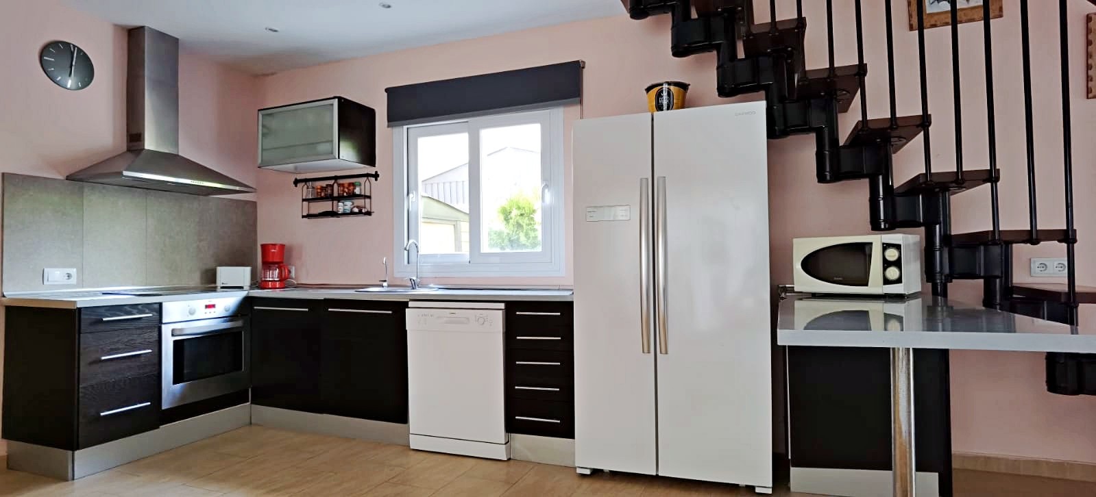 Ventanas de aluminio y doble cristal, suelo de baldosas, climatización reversible y aparcamiento exterior para un coche.