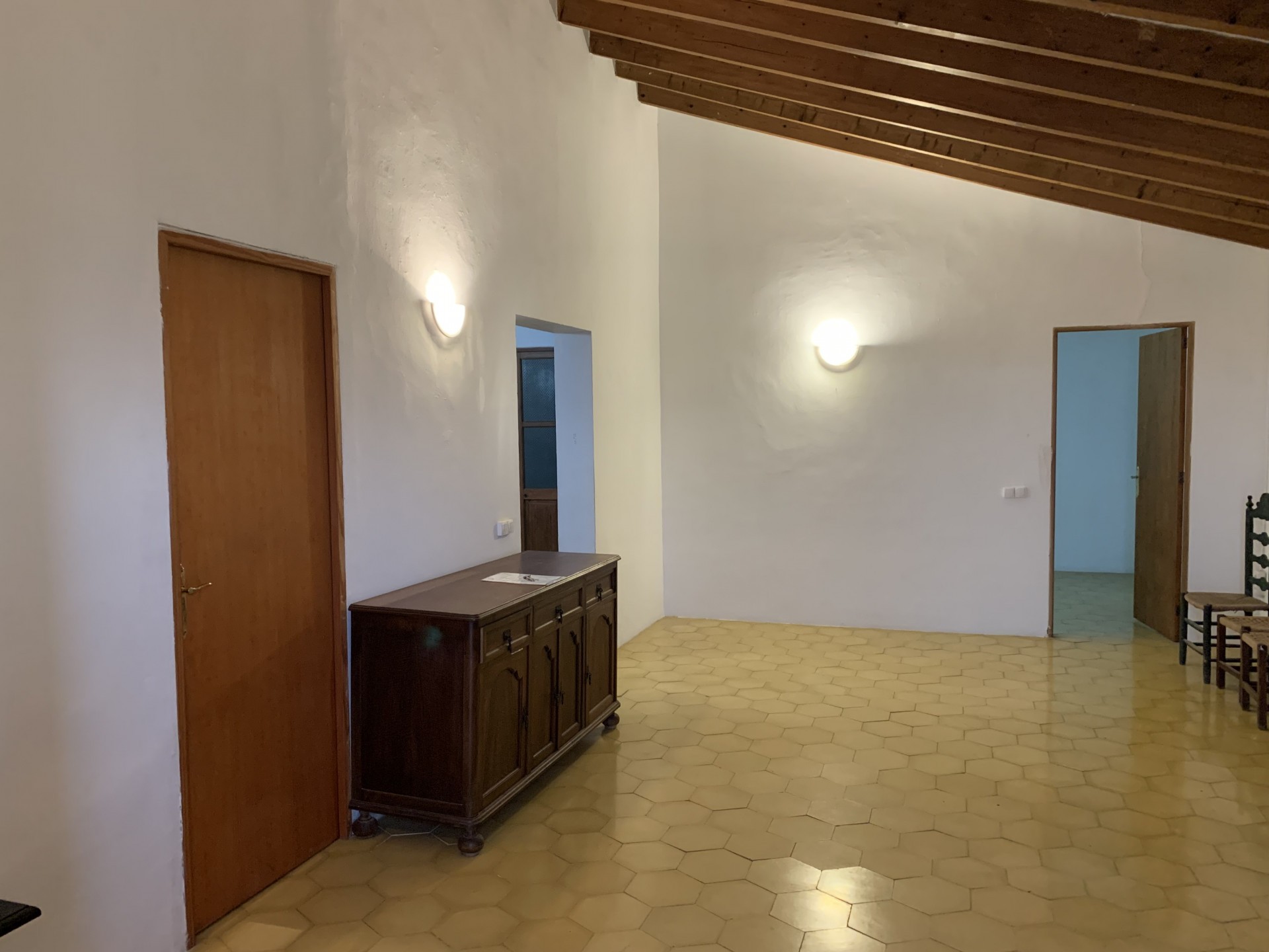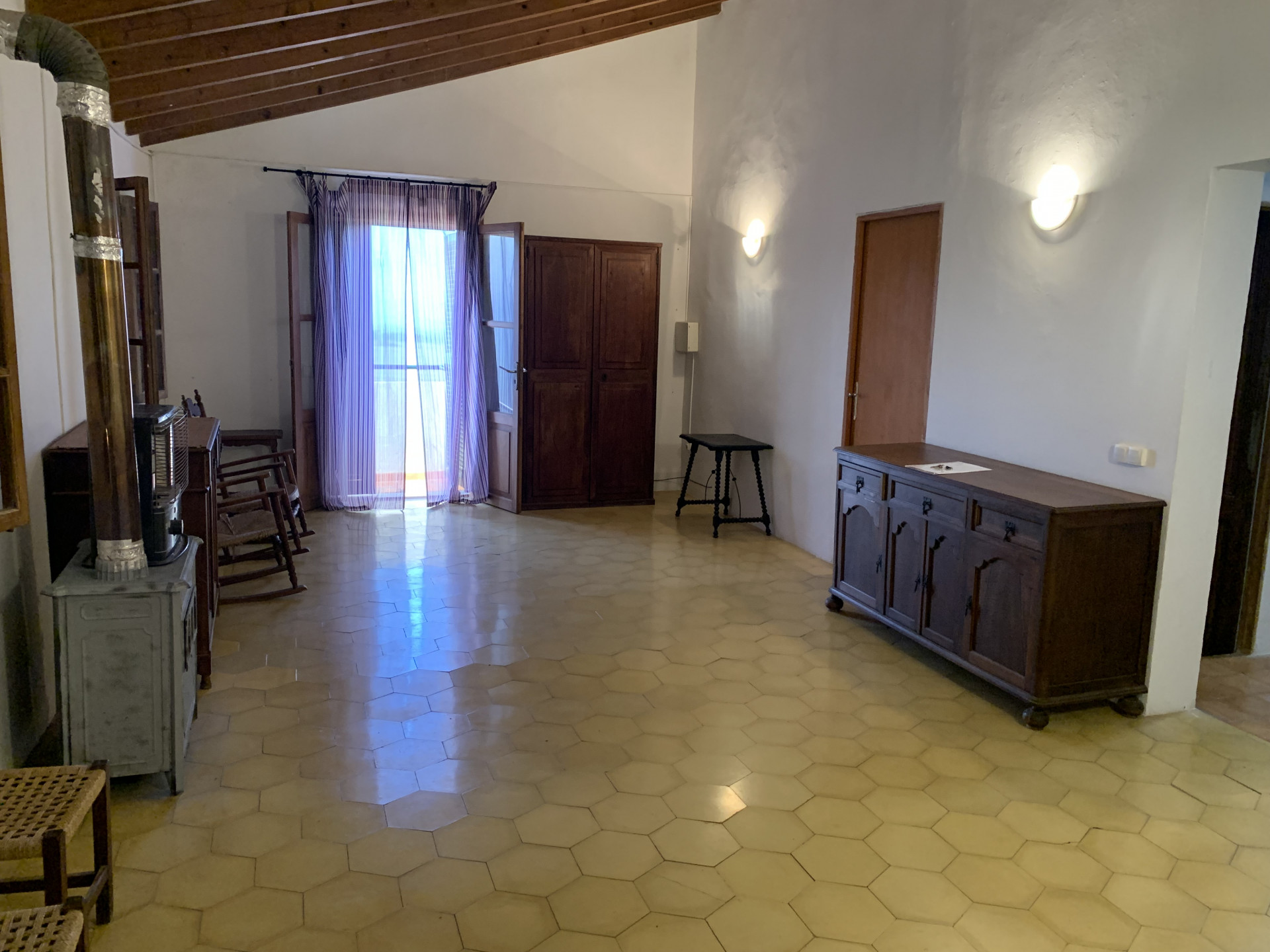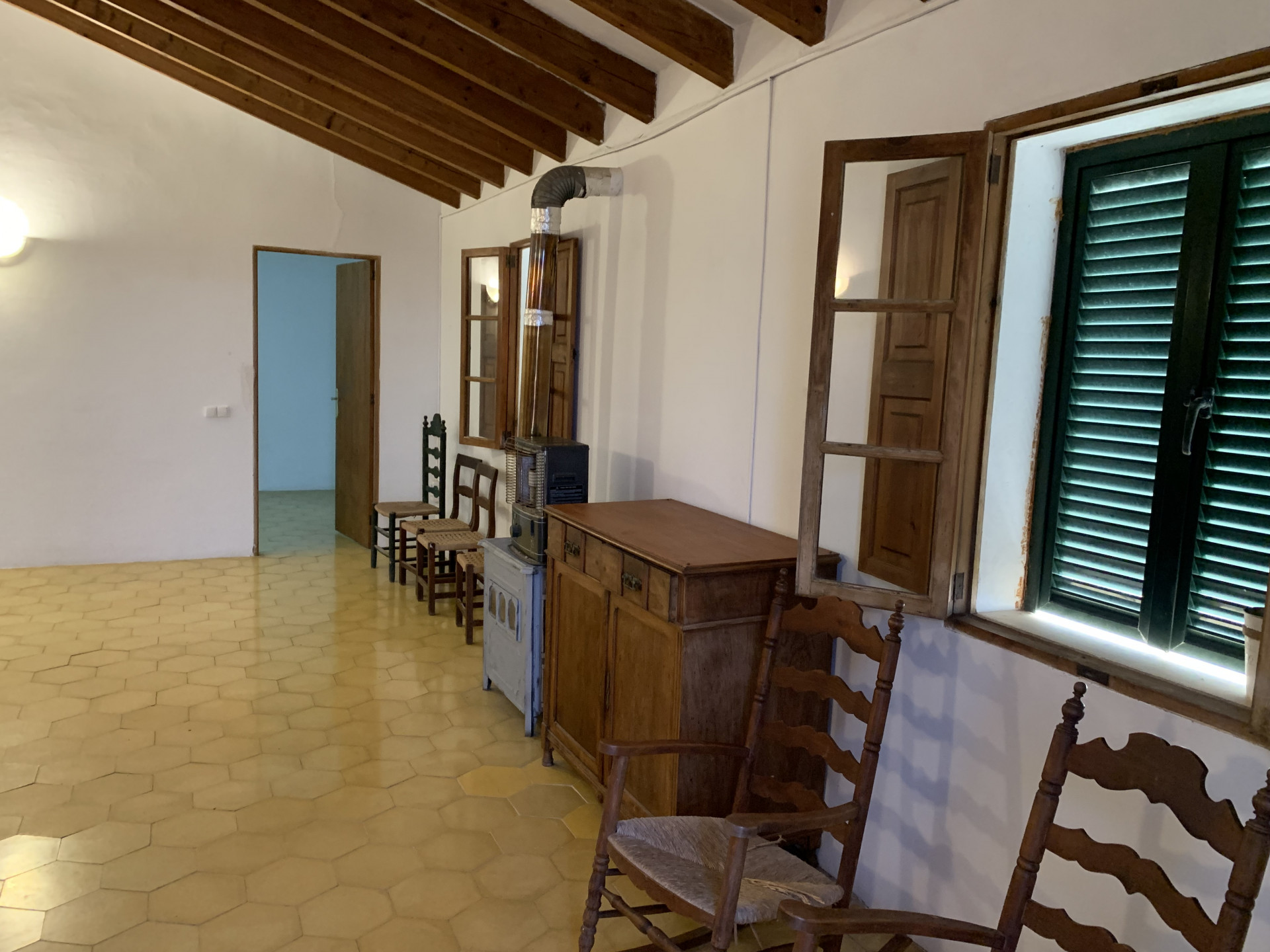 La casa consta de 2 plantas y ofrece una superficie construida de 440m2. La planta baja tiene un salón-comedor, 3 dormitorios, una cocina abierta, dos baños y un lavadero. A la primera planta se accede desde el exterior y se entra directamente a un gran comedor que funciona como distribuidor de espacios y con ventanas al exterior. Esta planta consta de 3 amplios dormitorios, una gran cocina, una despensa, con mucha luz y grandes ventanales, y un baño con ducha, que se comunica con el dormitorio principal a través de una puerta. Se puede disfrutar de un gran jardín de 2018m2, donde se encuentran dos antiguos molinos típicos mallorquines, cuadras para animales y un almacén.