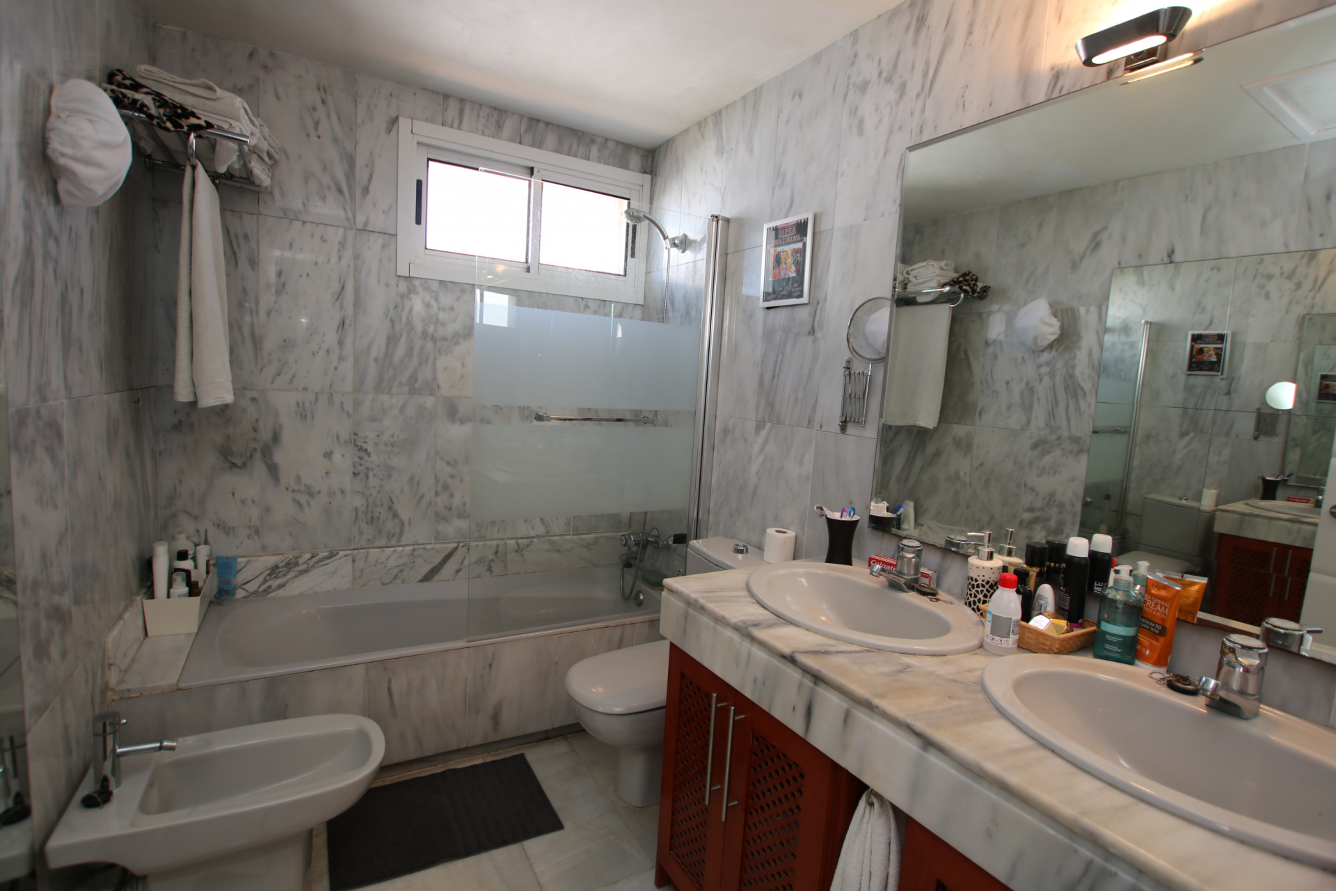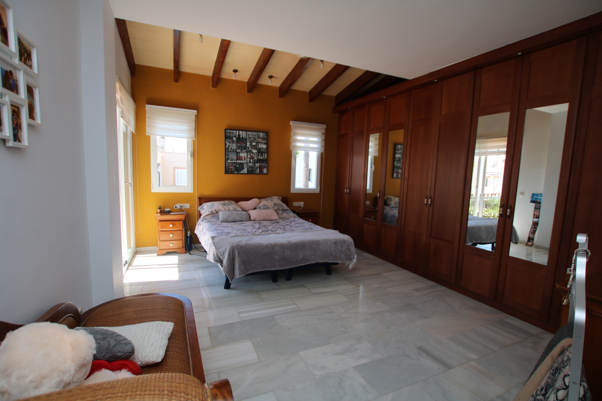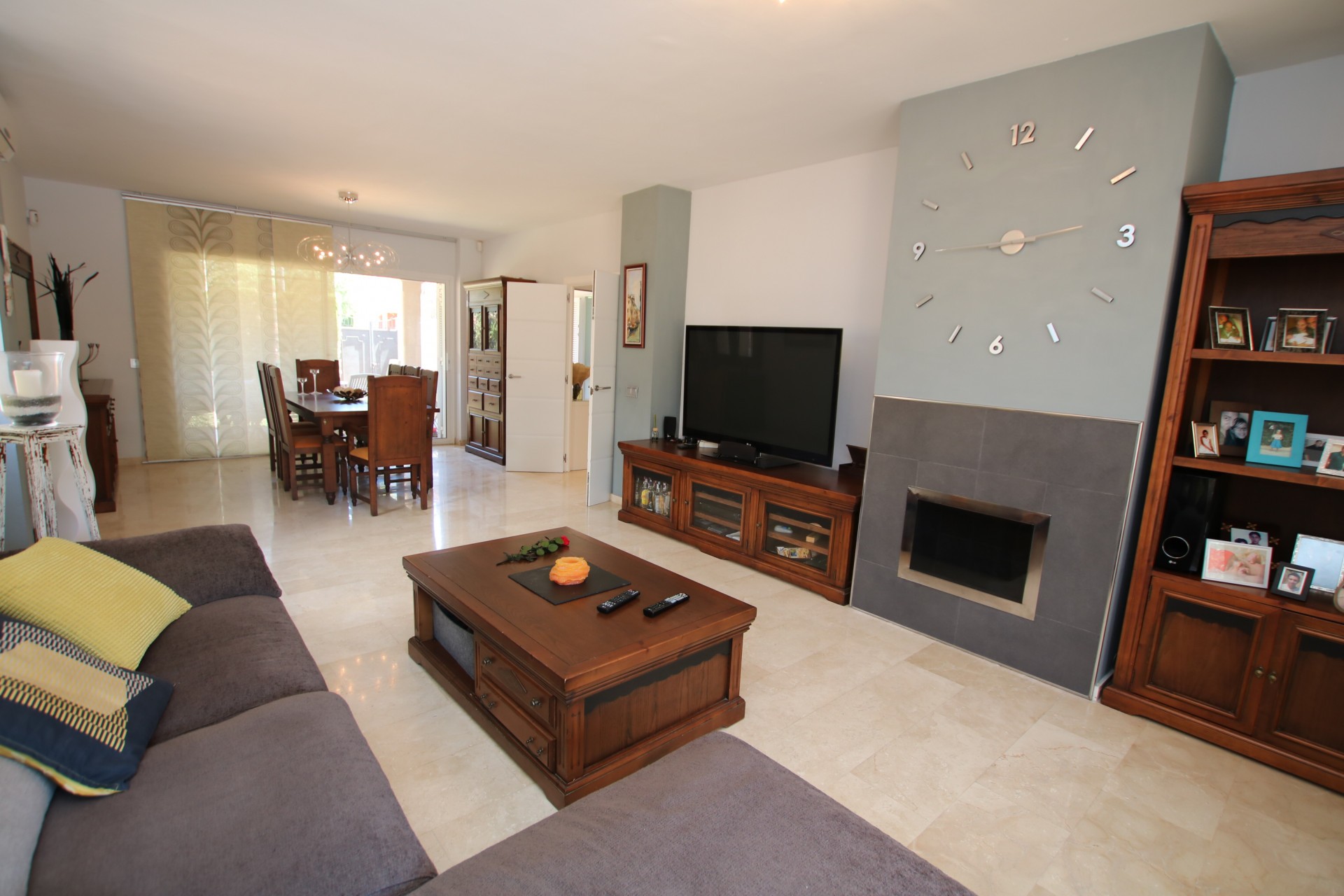 Casa pareada, de 198m2, distribuida en dos plantas. La propiedad cuenta con 5 dormitorios con armarios empotrados, 4 baños cuyo tres en suite, una cocina funcional independiente amueblada y equipada, un aseo y un salón de 40 m2 con chimenea. La casa dispone de un terreno de 330m2, varias terrazas y de su propia piscina de 8x4m y 2,20m de profundidad, que encantaran pequeños y grandes.